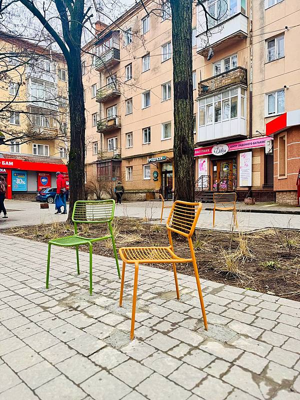 У середмісті на двох локаціях встановлено 8 вуличних антивандальних крісел: на вулицях Чорновола та Івана Павла ІІ. Таким чином авторка ідеї Ірина Чолій прагнула створити нові місця для відпочинку в громадському просторі та додати вулицям функціональності, затишку й унікальної атмосфери. Проєкт — це приклад тактичного урбанізму, зазначає ініціаторка, коли «за мінімальних витрат можна отримати видимий результат». Окрім цього, на локаціях із кріслами вже здійснили озеленення, яке реалізує міський департамент інфраструктури, житлової та комунальної політики. Кожен охочий може посидіти на яскравому кріслі та помилуватися містом.